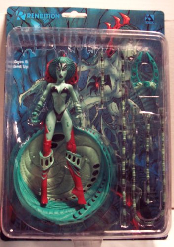 WEBWITCH * GREEN VARIANT * Avatar Press 7 Inch RENDITION 1998 Action Figure & Accessories. An advance scout for a species which dominated Earth long before man, the Webwitch fights for the future of her race - assimilating those who are worthy, and destroying those who are not. The Webwitch, has a special place in the evolutionary ladder, she is the bridge between the alien Spidernation and humans. Her choices can help determine who controls the globe in the next century. Biologically part of both worlds, but not fully embraced by either, she is torn between the desire to help the Spidernation expand and the human's quest to rid the world of the greatest predators the Earth has seen! Figure stands approximately 7 inches tall. Includes Avatar display base and accessories. Avatar Press / Rendition Figures. Ages 8 and up